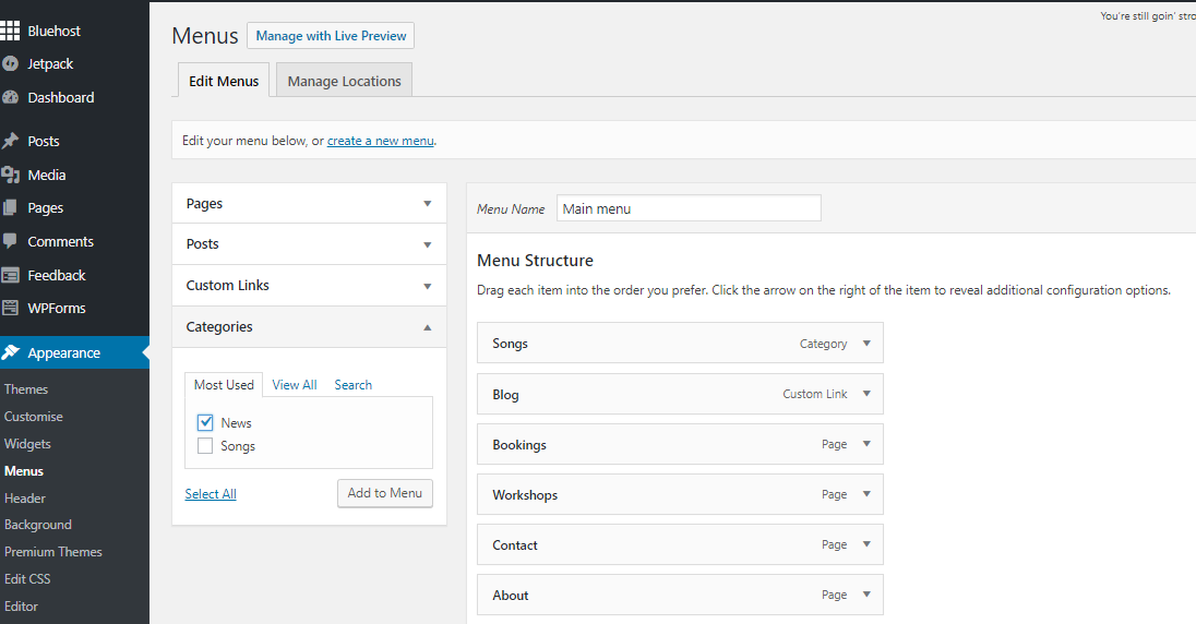 - In your Wordpress dashboard, go to Appearance > Menus