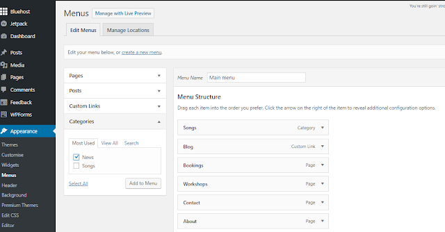 In the Wordpress dashboard:- Wordpress.org users, choose Appearance > Menus